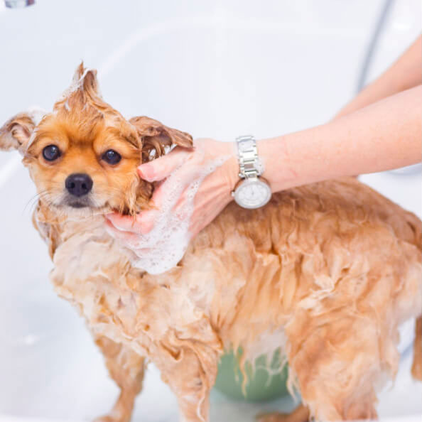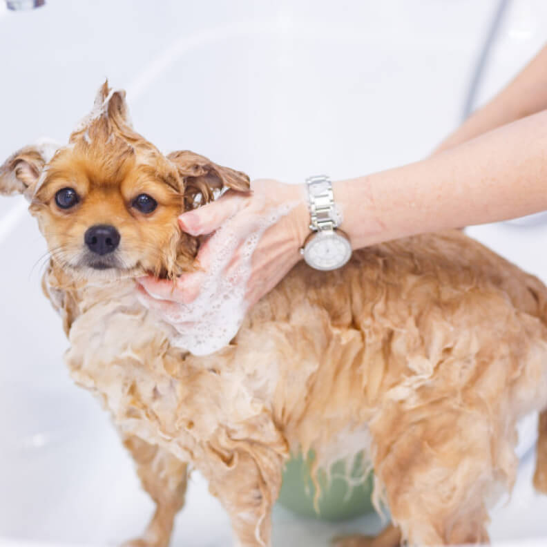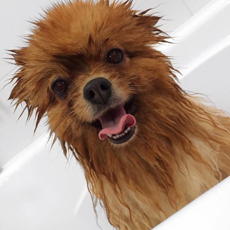 - 4-х этапное промывание шерсти профессиональной косметикой. Сначала мы используем суперочищающий шампунь, затем увлажняющий шампунь, потом кондиционер или маска, а также финальный спрей антистатик, который закрепляет эффект предыдущих этапов и делает собачку ароматной;